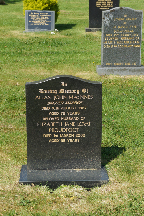 Biography: Bessie was Allan MacInnes’s second wife. She had been a policewoman in her working life.